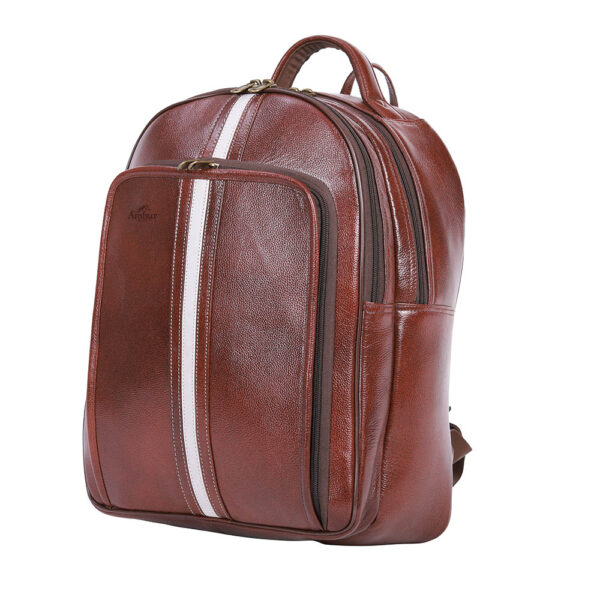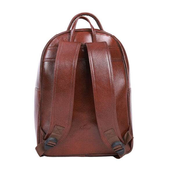 • A premium leather backpack suitable for unisex and everyday use.