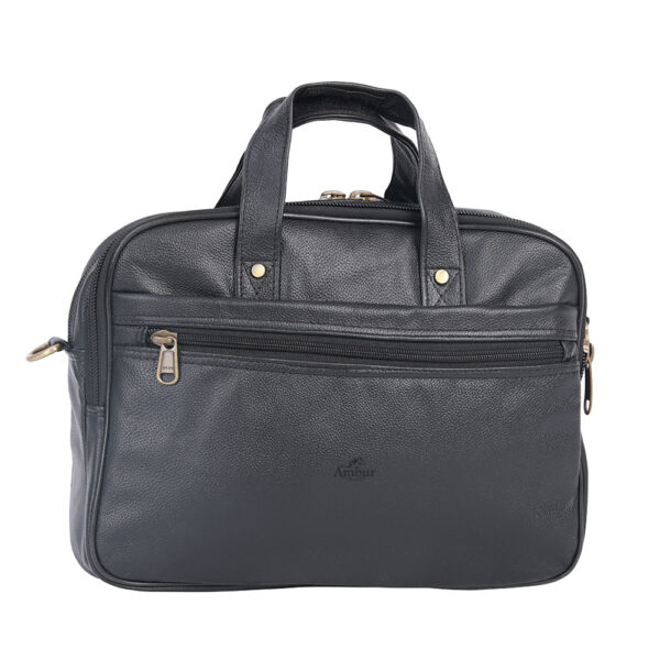 Premium brown cow leather office bag with roomy compartments and multiple front zippers.